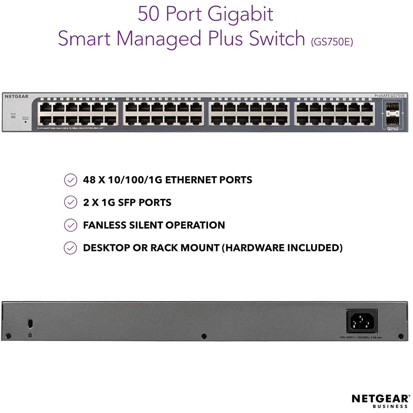 NETGEAR 50-Port Gigabit Ethernet Plus Switch (GS750E) - with 2 x 1G SFP, Desktop/Rackmount, and ProSAFE Limited Lifetime Protection